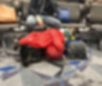 The Pakt One doubling as as part of a makeshift munchkin bed at the airport.